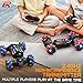 [DURABLE MATERIAL]: The car toy are made of premium ABS plastic, and non-toxic explosion-proof PVC materials. Rubber tires are soft and elastic, shock absorption, strong grip, anti-skid. No matter indoor or outdoor, the stunt car can break through easily.
