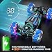 RC STUNT CAR: 360-Degree rotation on dual-sides, race to drift and flip the RC car all around. This RC stunt car for kids will spin like a crazy cyclone with cool lighting effects. You can control the RC cars in any direction with its remote controller.