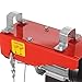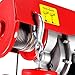 Specificatoins: This light-duty Electric Cable Hoist will lift up to 39 ft. in the air, allowing you to quickly and safely lift any load without problem. High strength carbon steel line cable. Maximum load capacity up to 440lbs/200KG. One line load 220lbs/100KG and doubble line load 440lbs/200KG. Max lift height of 38ft of single line, 19ft of double line;