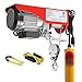 VERSATILE USE: electric hoist winch can be used to lift regular or irregular shape things as stones, trees, mower, engine, truck top cover ect. vertically or horizontally in garage, ceilings, loft, barn, attic anywhere and anytime you can imagine, and is a "must" in Christmas for lifting all kinds of heavy things. Lift Slings are included to make your job easier.【Electric Hoist Runs with Emergency Stop Switch, the Red Button Works for that】