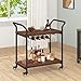 IT’S IN THE DETAILS – This rustic brown bar cart is a versatile piece with a metal frame and faux wood shelves, with racks on the second tier that can hold up to 6 wine glasses and 5 compartments for wine bottle storage. The top is open to allow you to set drinks and snacks on top, and it comes with 4 metal wheels for easy maneuvering.