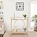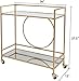MOBILE SERVING CART: This gold serving cart features a compact frame with a handle that easy to steer directions or place your towel. Its 4 swivel castors make the kitchen cart easy to move around and 2 of them are equipped with brakes, keeping the bar cart stay in the place you want.