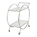 Two tiers easily accommodate trays and entrees, while wheels and a metal handle make it simple to move this dainty design from one place to the next.