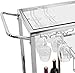 2-tiers Amply Storage Space:2-tiers bar cart silver is great for holding wine glasses and liquor, and with 10 wine racks and 2 rows glasses holders which can meet the most of storage needs.This coffee cart extra offers 2 rows hooks for mugs.Overall dimension: 17.7"D x 25.6"W x 30.9"H.