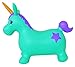 Stable 4 legged Space Hopper, Bouncy Unicorn. Inflated size appr. Length: 63cm/25in from nose to tail; Seat height: 26cm/10in; Body height: 47cm/18.5in from ear to floor.