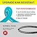 WONT'T KINK UNDER PRESSURE– Our hybrid hoses are memoryless, meaning it will lay flat, resist kinks, and can coil easily, making them a breeze to put away. Watering hose supports 150 psi working pressure and 450 PSI bursting pressure. Recommended using at residential water pressure.