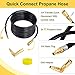 Premium Materials: 1/4 inch full-flow plugs, 1/4 inch globe valves and elbow fittings are made of 100% solid brass fittings. 24 ft propane quick connect hose made of premium rubber to 100% solid brass connectors with very good weather resistance can provide a more secure connection