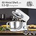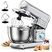 🎂 Tilt-Head Design and Easy to Clean: The tilt-head designs are easier to install or uninstall bowls and accessories easily for us, each stand up mixer will be matched with a 5.8QT 304 Food-grade stainless, Flat beater, Dough hook, Wire whisk, Spatula, Splashguard, Egg white separator. All of the attachments are dishwasher-safe.