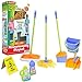 Kids cleaning set includes a full kids broom set tools + wet floor sign and imaginary cleaning products! Exciting for a multitude of ages and genders!