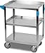 Perfect for heavy loads: The Jubilee utility service cart is crafted with rugged construction, making it perfect for use in multiple environments. It features four brushed aluminum uprights and three easy-to-clean durable smooth glossy finish 3.6 mm thick shelves with a 12” clearance between each make them ideal for storage.
