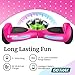 🎀【EASY LEARN AND CONTROL】With the self-balancing control system, the electric hoverboards are easy to learn and control. Simply step onto the board, find your balance, and you're ready to go!(tips: the closer your feet are to the wheel, the more stable you'll be). Show off your skills with make fast turns, and even perform 360°rotations!
