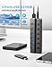 QUALITY USB C HUB - The black Metal Housing of the Desktop Charging Station is made of study High-Quality Aluminum Alloy. USB C Adapter Hub has a special built-in Power Adapter with 12V/10A/120W Power Supply & Cooling Fan triggered by a built-in Temperature Sensor when the Internal Components are heated up to 122-131ยฐF. USB Port Hub has strong built-in multi-level Protections: Over-Voltage, Over-Current, Short Circuit, Over-Heating, and Lighting Protection.