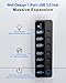 1 Smart Charging Port: This powered USB hub come with a dedicated charging port allows to charge cellphones, tablets, camera, speakers and more, automatically detects and delivers the optimal charging current
