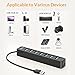 【Instant expansion and SuperSpeed Syncing】-This 7-port USB 3.0 data hub can instantly expand 1 USB 3.0 port to 7 external USB 3.0 data ports for keyboard, mouse, printer, hard drivers and more USB devices, syncing data at blazing speeds up to 5Gbps in no time.