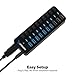 Individual Switches: This 7 port USB hub built-in on and off switches with led indicators for each port, being able to turn on or off the separate USB port without unplugging the equipment, blue LED lights let you know the working status easily, each switch remembers the on/off config