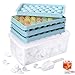 INSTANT ICE RELEASE: Made of sturdy plastic, our ice cube tray with lid and bin allows for easy and instant ice release, unlike silicone ice cube molds and silicone ice cube tray. Simply twist the popsicles molds gently and flip it over to release 66 perfectly rounded ice cubes, thanks to the inclusion of two circle ice cube trays.