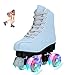 WEAR-RESISTANT WHEELS: Roller skates are equipped with sturdy four-wheel skates, made of durable and molded materials, which can provide safe and reliable skating performance. The shiny wheels make you more cool in the skating