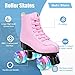 ❤【Wear-resistant Wheels】Roller skates are equipped with sturdy four-wheel skates, made of durable and molded materials, which can provide safe and reliable skating performance. The shiny wheels make you more cool in the skating.
