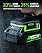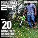【Highly Efficient Brushless Motor & 2×2Ah Batteries】 delivers more power at 2X More Torque, cooler operation at high speeds, enhanced battery runtime and longer service life. 2×2Ah batteries can ensure that your Greenworks tool is always ready for use when you are.24V Lithium-Ion battery provides 20% more power and 35% more run-time versus 20V competition, and delivers fade-free power with no memory loss after charging.