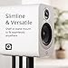 with a slim profile design, easily mount this center channel speaker mount flush against the wall either above or below a tv (with the optional bracket) or place on a tabletop or shelf.