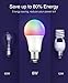 Energy Saving: 8W Smart LED light bulb is equivalent to with 75W incandescent bulb(A19 E26), saving consumption up to 80%. Lifespan of the smart colored light bulbs can approximately last 20,000 hours
