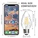 💡【Full Specification】 F15 Candelabra dimmable led light bulbs, made of premium quality clear glass, E26 standard medium base, 360 lumen, 4W to replace 40watt old incandescent bulbs. AC 110V/120V/130V input, 2700K soft grow, 360° beam angle, high CRI 80+, filament led design, vintage looking, great for upgrading e26 candelabra based pendant lighting fixture.