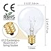 STANDARD SIZE AND STRING SOCKET FIT: Small Round Clear Glass. Diameter: 1.5” (3.8cm), Length: 2.25” (5.7cm), Shape: G12 / G40, Base: E12 Candelabra Screw Base (12mm Diameter), Fits C7 String Light Socket. Pack of 25.