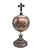 SPIRITUAL AND BEAUTIFUL, handcrafted modern and elegant vintage look. Made of 3 main parts, base round body, metal bowl and top cover with catholic crucifix , nice bronze finish, well made and functional.