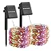 🙋【Outdoor Solar String Lights】33Ft. Long Copper Wire Outdoor Fairy Light String, with 100 Low-Heat Led Lights, Great ideal for Decorating Homes, Outdoor, Patio, Christmas Party, Gardens, Patio, Gate, Yard, Wedding, Party, Backyard etc.