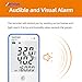 【Audible and Visual Alarm】Supports up to 2 temperature and 2 humidity alarm thresholds along with buzzer alarm and screen indication alarm.