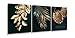 PERFECT BOTANICAL GOLD WALL ART SIZE:11.5 x 15 inches (29x38cm),TOTAL 3 PANELS:HD prints on premium canvas, each panel of canvas prints already stretched on solid wooden frames. Ready to hang.