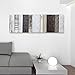 HAND PAINTED WALL ART - With a color palette ranging from light tans to dark browns and grays, this piece can enhance many types of décor. Some of the planks feature vertical texture and some feature circles or diamond patterns. The piece imparts a sense of motion as the different textures and colors draw the eye from place to place
