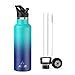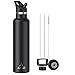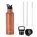 THOUGHTFUL LID DESIGN(bpa free):</b> Standard mouth stainless steel water bottle has two different stlyes of lids, straw lid and handle lid with strainer so you don't have to worry about ice slipping into mouth. Vacuum water bottle comes standard with an attached PP material screw cap that creates on air–toght vacuum send and is great for travel and outdoor use. Stainless steel drinking bottle also comes with a sport cap and a straw whoch is great for gym/sport activities