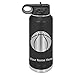 The design and text won't fade since we laser engrave it right onto the bottle. Comes with a screw on lid with a flip-top sipping straw.
