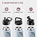 BPA FREE STRAW LID / SPORTS TOP + LEAK PROOF STAINLESS STEEL SCREW ON CAP: Each water bottle comes with a 100% leak proof, food grade 18/8 stainless steel cap, an interchangeable BPA/PVC free push pull sports cap as well as straw lid with straw. We included 2 straws for the straw lid for your convenience.
