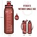 DRINK 64 OUNCES OF WATER DAILY EASILY WITH THIS WATER BOTTLE: With a time marker measuring how much water you should be drinking hour-by-hour, you can stay on track with your water consumption each day.