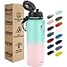 ▶ WHAT YOU GET - A High-quality Insulated water bottle, 1 straw lid, 1 spout lid, 2 straws and 1 straw brush. Both caps can seal airtight with leak-proof. Straw lid with 120º rotation angle makes drinking easier and more convenient. Spout lid allows for fast water flow when you're feeling the burn. All materials in contact with beverages are BPA-free, food-safe and recyclable. *Bottles should be hand washed and both lids are top rack dishwasher safe.