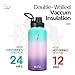 INSULATED SPORTS WATER BOTTLE: No Sweating! The double wall insulation makes the Coldest sweat-free! It keeps your drink COLD for up to 36+ hours, and HOT for up to 13+ hours. *NOTE: ONLY the 24oz fit in cupholders*