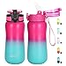 【Perfect Gift Choice Great Water Bottle Accessorie 】Vivid colors & cute stickes help you express yourself and be known. Package includes: 1 x insulated water bottle, 1 x stainless steel fruit strainer, 1 x straw lid, 1x chug lid, 1 x carabiner lid, 1 x straw brush, 1 x O-seal ring & rubes, 1 x care & instructions, 1 x box. It can be a great gift for children,teenagers,women and men.