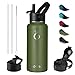 ▶ WHAT YOU GET - A High-quality Insulated water bottle, 1 straw lid, 1 spout lid, 2 straws and 1 straw brush. Both caps can seal airtight with leak-proof. Straw lid with 120º rotation angle makes drinking easier and more convenient. Spout lid allows for fast water flow when you're feeling the burn. All materials in contact with beverages are BPA-free, food-safe and recyclable. *Bottles should be hand washed and both lids are top rack dishwasher safe.