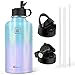 2 Caps Pack: This 64 oz stainless steel water bottle comes with straw lid and flex cap, the flex cap is perfect for the beach, camping and hiking, while the straw lid is suitable for cycling and road trip