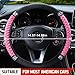 Quality Material: this crystal steering wheel cover is made of quality leather and rhinestones, shiny diamond rhinestones won't fall easily or hurt your hands, pink car accessories set is made of soft leather, which not only protects your steering wheel and seats, but also provides you with an excellent tactile feel and relieves driving fatigue