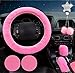 Pink Plush Design: the steering wheel cover, handbrake cover, gear shift cover are designed with plush on the surfaces, which are soft and comfortable to touch, making it hard to feel too cold or too hot when you touch, and they can cover original steering wheel, handbrake and gear shift, neat and good looking