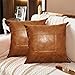 [Leather Throw Pillow Cover]: Only Cover, No Filler, you are free to choose your preferred filling of foam or down. Pillows covers are made of PU faux leather, cruelty-free, more cost-effective than genuine cowhide leather. Size is 18x18 inches, set of 2pcs, you could use 18x18 or 20x20 inches liner.