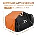 【⭐𝐄𝐧𝐣𝐨𝐲 𝐎𝐮𝐭𝐝𝐨𝐨𝐫 𝐰/ 𝐒𝐮𝐧𝐰𝐡𝐚𝐥𝐞 𝐀𝐓𝐕 𝐂𝐨𝐯𝐞𝐫𝐬】➀Outstanding orange black color matching, with handle reflective strips, you will find your 4 wheeler easily and greatly enhance the safety for parking,day or night. Handle reflective strips make you easy to hang the cover to dry. ② 4 wheel adjustable straps buckles and front and back elastic cord sewn in the bottom, which can help protect your four wheeler better in the wind. ③FRONT Mark makes you convenient to install.