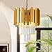 【Crystal Pendnat Light】Double-layer transparent crystal design, golden crystal pendant light with matte copper finish and irregular arrangement of frames, unique and novel design, upgrade the room.