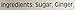 Ingredients: Sugar, Ginger, Gelling Agent: Citrus Pectin; Acidity Regulator: Citric Acid. Gluten free, made in a nut free factory, suitable for vegetarians and vegans.