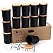 Set of 12 Pack - Capacity : 10 oz. Size: 4.2" H(4.4" with bamboo cover) x 3.15"D glass candle jars with real bamboo friction-fit lids and 36 sticky labels (9 x printed "HAND MADE LOVE" 9 x printed "HAND POURED SCENTED CANDLE" 18 x Blank) and 1 x black marker for DIY.