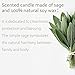 LONG LASTING BURN TIME: 9 ounces scented candles, Leadfree cotton candle wick, burns for 40 hours, Housed in a recyclable glass jar with lid; Measures 3.54 inches tall and 2.75 inches diameter.