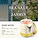 HIGHLY SCENTED: Sea Salt | Jasmine | Buttercream, an exotic, upscale take on a much-loved classic scent, These long lasting candles will invigorate your senses with this classy, sophisticated fragrance.